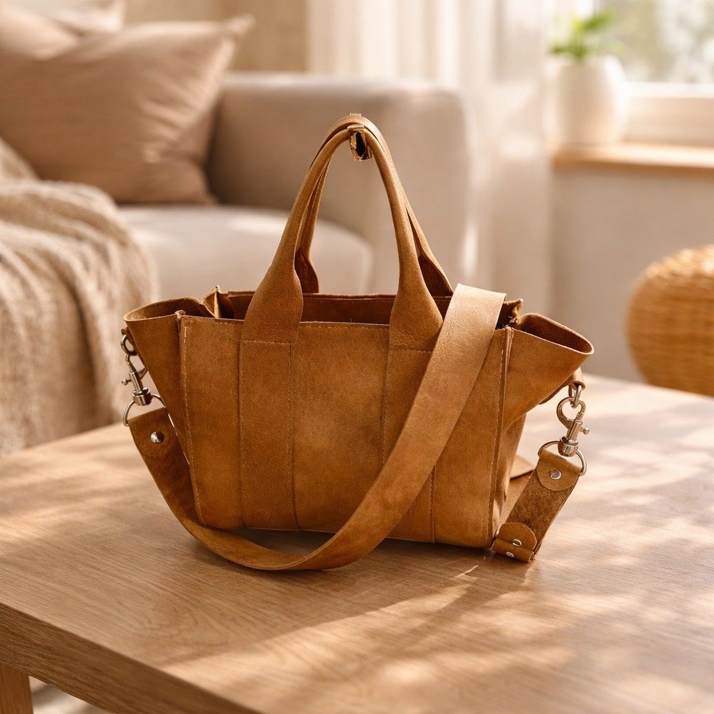 2024 fut l’année de ma découverte du cuir, matière qui m’attirait depuis plusieurs années, avec la confection de mon premier sac cabas, le “mini tote bag”.