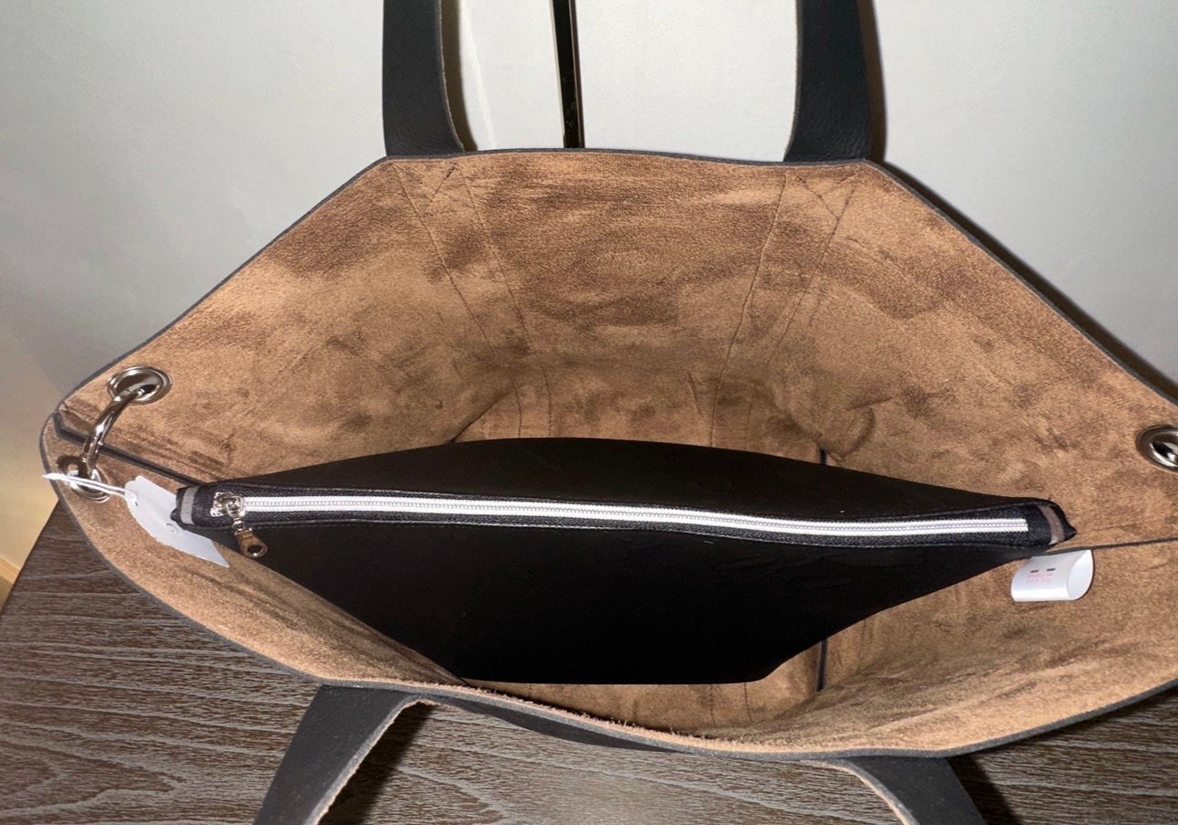 Sac en simili cuir Valentino noir, doublé daim, avec grande pochette intérieure.
